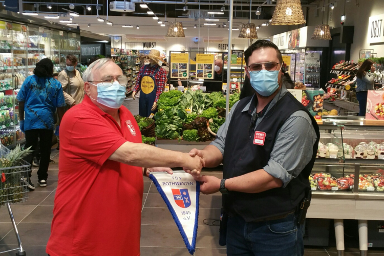 Nach monatelanger Bauphase wurde am Donnerstag, 01.07.2021, der neue REWE Markt Ehlert an alter Stelle wiedereröffnet. Vorstandsverantwortliche des TSV Rothwesten ließen es sich nicht nehmen der Familie Ehlert zur Neueröffnung ihre Glückwünsche auszusprechen. Durch den Finanzvorstand des TSV Rothwesten Günter Nedwig wurde Valentin Ehlert ein Ehrenwimpel des Vereines überreicht.